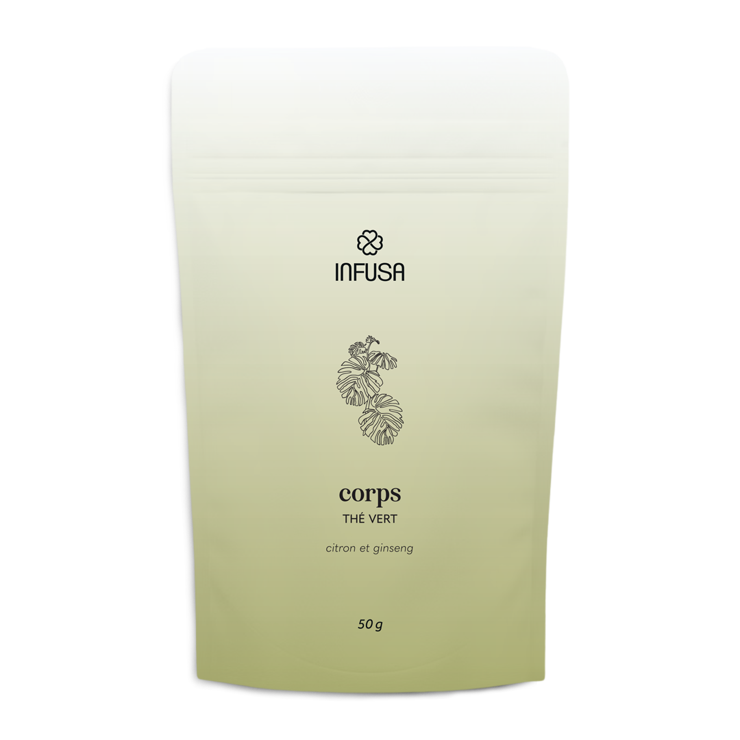 Inspiré par les profondeurs de l’Amazonie, le thé CORPS apporte force et confiance, à l’image un arbre majestueux. Ce thé vert citron et ginseng, à déguster le matin, incarne l’ancrage, la gratitude et la stabilité.